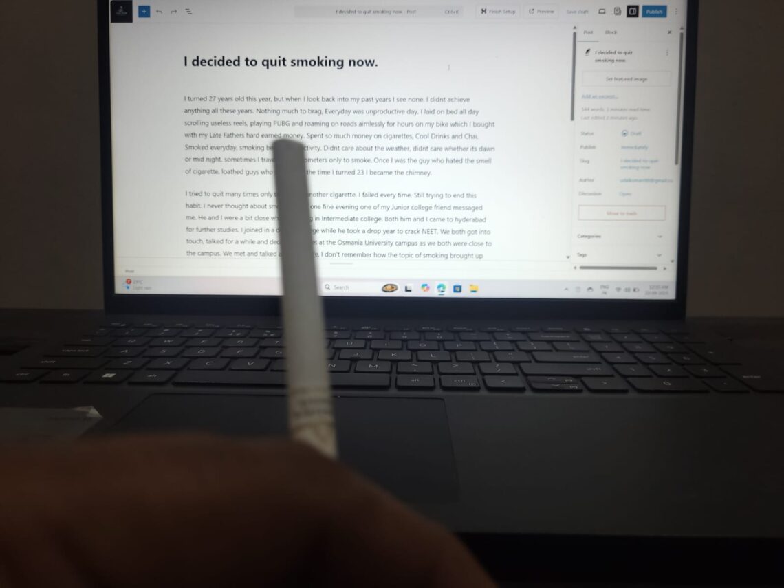 I turned 27 years old this year, but when I look back into my past years I see none. I didnt achieve anything all these years. Nothing much to brag, Everyday was unproductive day. I laid on bed all day scrolling useless reels, playing PUBG and roaming on roads aimlessly for hours on my bike which I bought with my Late Fathers hard earned money. Spent so much money on cigarettes, Cool Drinks and Chai. Smoked everyday, smoking became an activity. Didnt care about the weather, didnt care whether its dawn or mid night. sometimes I travelled 50 kilometers only to smoke. Once I was the guy who hated the smell of cigarette, loathed guys who smoke. By the time I turned 23 I became the chimney.